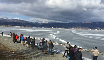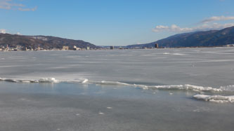 諏訪湖の御神渡りと富士山